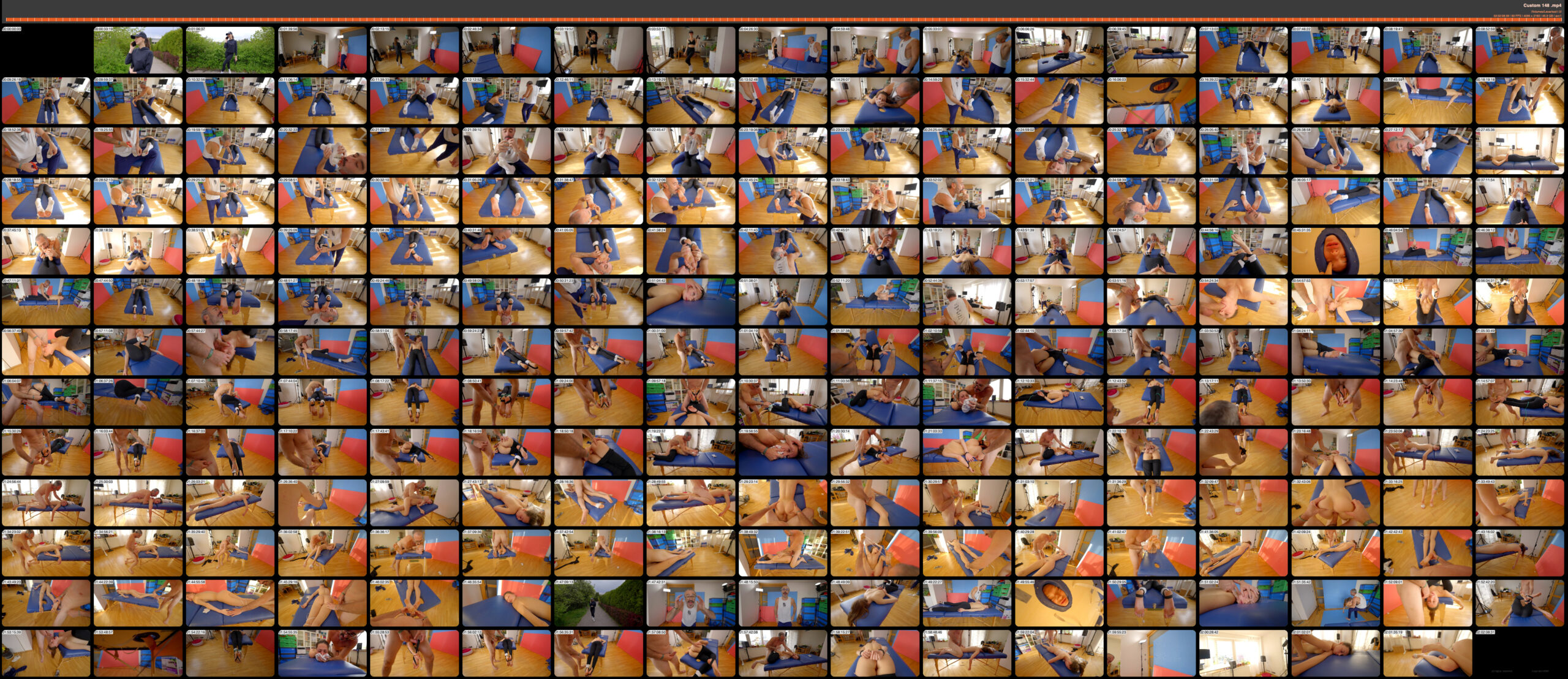 Scene 7 (approx. 30 minutes): After wiping away the semen, remove the yoga pants and move Isabella to the massage chair. A sexual intercourse position must be depicted, accompanied by a close-up shot of the feet.